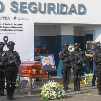 El gobernador Sergio Salomón rinde homenaje al policía Juan Pablo Ramos Morales