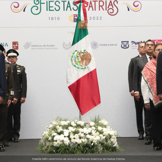 Puebla, Pue.- El gobernador Miguel Barbosa Huerta presidió la Ceremonia de Lectura del Bando Solemne con motivo de las Fiestas Patrias.